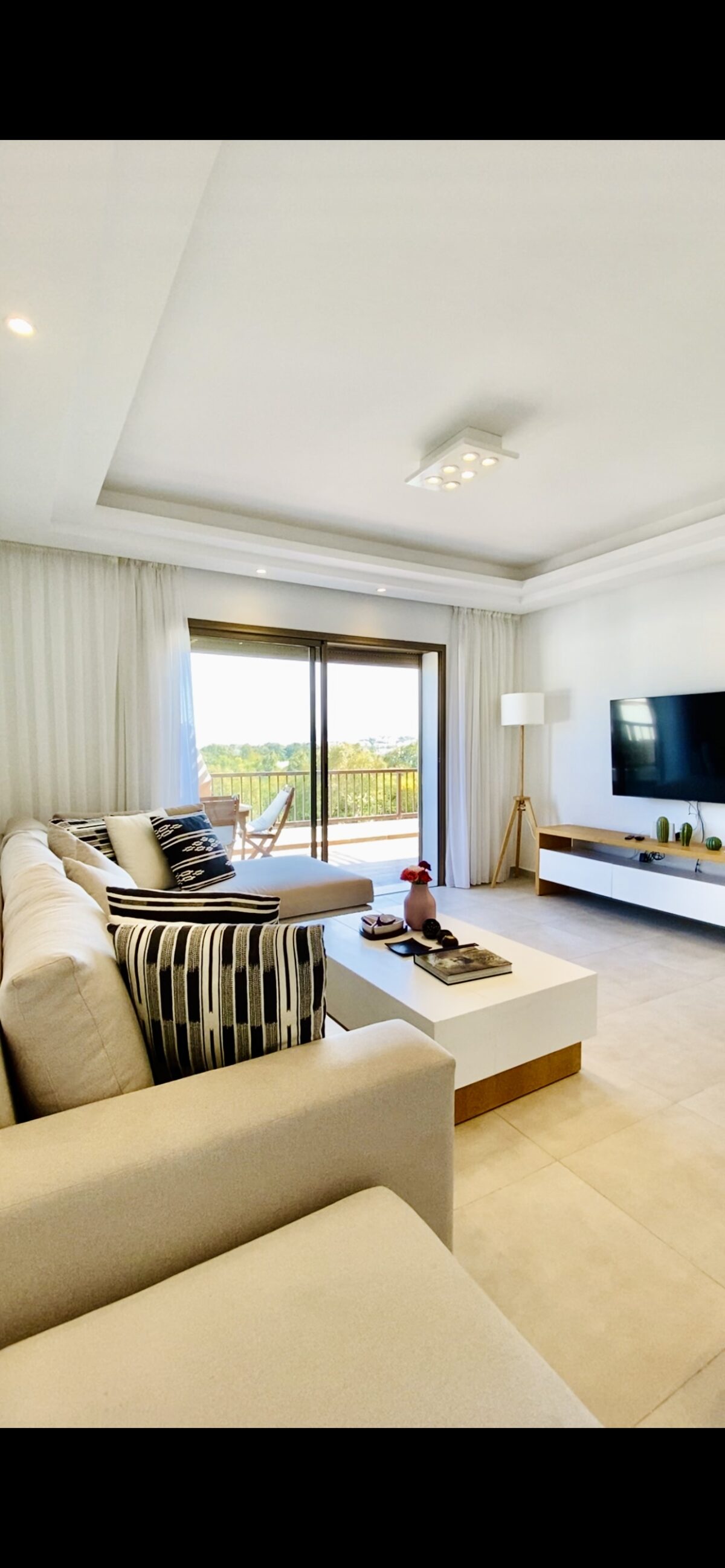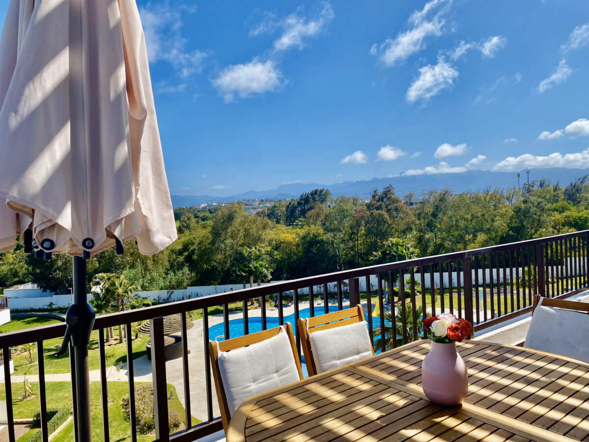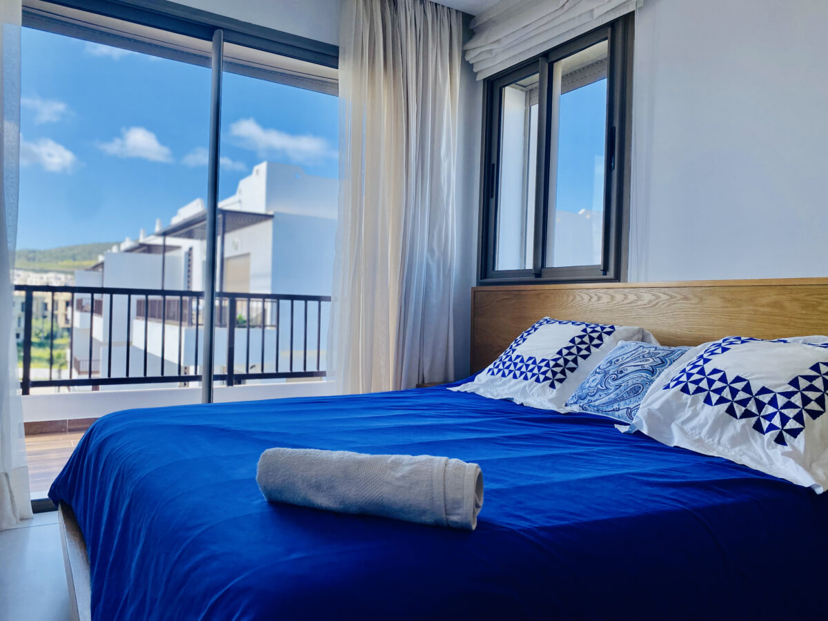 SaKKan.ma vous offre un appartement à la location au complexe Cabo Huerto très moderne et accueillant avec une décoration sobre et très  lumineux, des couleurs douces offrent un confort cosy dans un cadre apaisant.